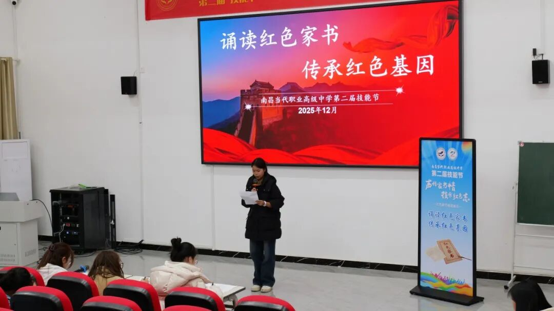 一页页家书,是跨越岁月的赤诚告白;一声声诵读,是赓续血脉的时代回响。12月16日,南昌当代职业高级中学第二届技能节"红色家书诵读"赛项圆满落幕。各班学子以声为媒、以情为桥,穿越时空与革命先辈,展开了一场跨越百年的对话,用铿锵有力的诵读声奏响青春传承的红色乐章。